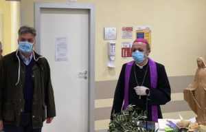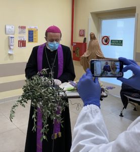 Una gradita visita stamane al Piccole Figlie Hospital. Il Vescovo di Parma, mons. Enrico Solmi, ha portato un ramo d’ulivo per dare l’avvio alla Settimana Santa, scegliendo l’ospedale Piccole Figlie come simbolo dei luoghi di cura, in questo periodo in cui le nostre vite sono sconvolte dal morbo del coronavirus. Il Vescovo, attraverso l’impianto audio interno, ha impartito l’assoluzione generale ai malati e al personale dell’ospedale, leggendo un brano del vangelo (Lc 8, 43-48) e poi recitando l’Ave Maria.
