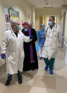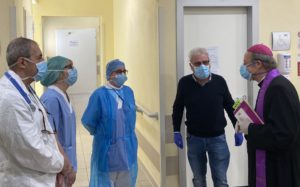 “L’assoluzione generale – ha detto mons. Solmi – è la possibiltà, per chi lo ritiene, di chiedere il perdono dei propri peccati e avere il sacramento della riconcilazione attraverso questa formula particolarissima che significa che non c’è bisogno di andare dal confessore e dire i propri peccati ma in emergenza possono essere perdonati in questo modo. È un segno di misericordia e vicinanza molto atteso dalle persone in situazione difficile che combattono una battaglia dura. Ci ricorda da un lato che tutti abbiamo bisogno di misericorda e perdono e dall’altro ci ricorda che il Signore è andato in croce per salvarci. È anche un segno di vicinanza a tutto il personale sanitario che esso stesso può fare questo atto, e un segno di solidarietà per chi è qui, ma anche per chi è in casa e patisce dei disagi, affinché tutti assieme possiamo saltarne fuori”.